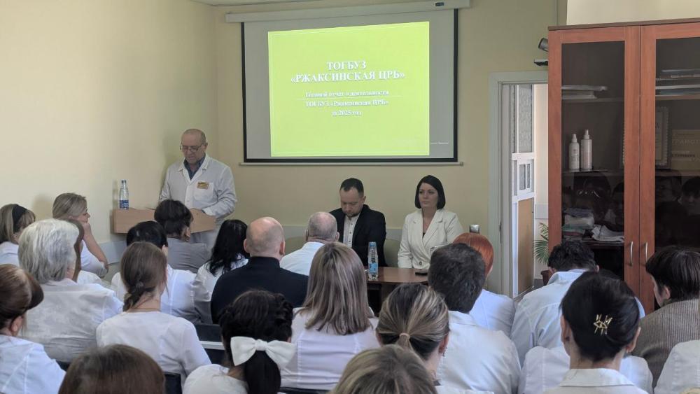 Сегодня в Ржаксинской центральной районной больнице состоялось ежегодное отчетное собрание трудового коллектива, посвященное подведению итогов деятельности учреждения за 2025 год. В мероприятии приняли участие заместитель министра здравоохранения области, начальник отдела лицензирования, ведомственного контроля качества и безопасности медицинской деятельности А.К. Федюшин, а также заместитель главы администрации Ржаксинского муниципального округа по социальным вопросам О.С. Михайлина.